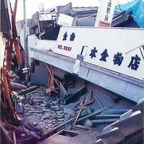 一見、あまり被害が無かったように見えますが、アーケードのおかげで完全倒壊は防げましたが、ほとんどの店舗が全壊状態でした。